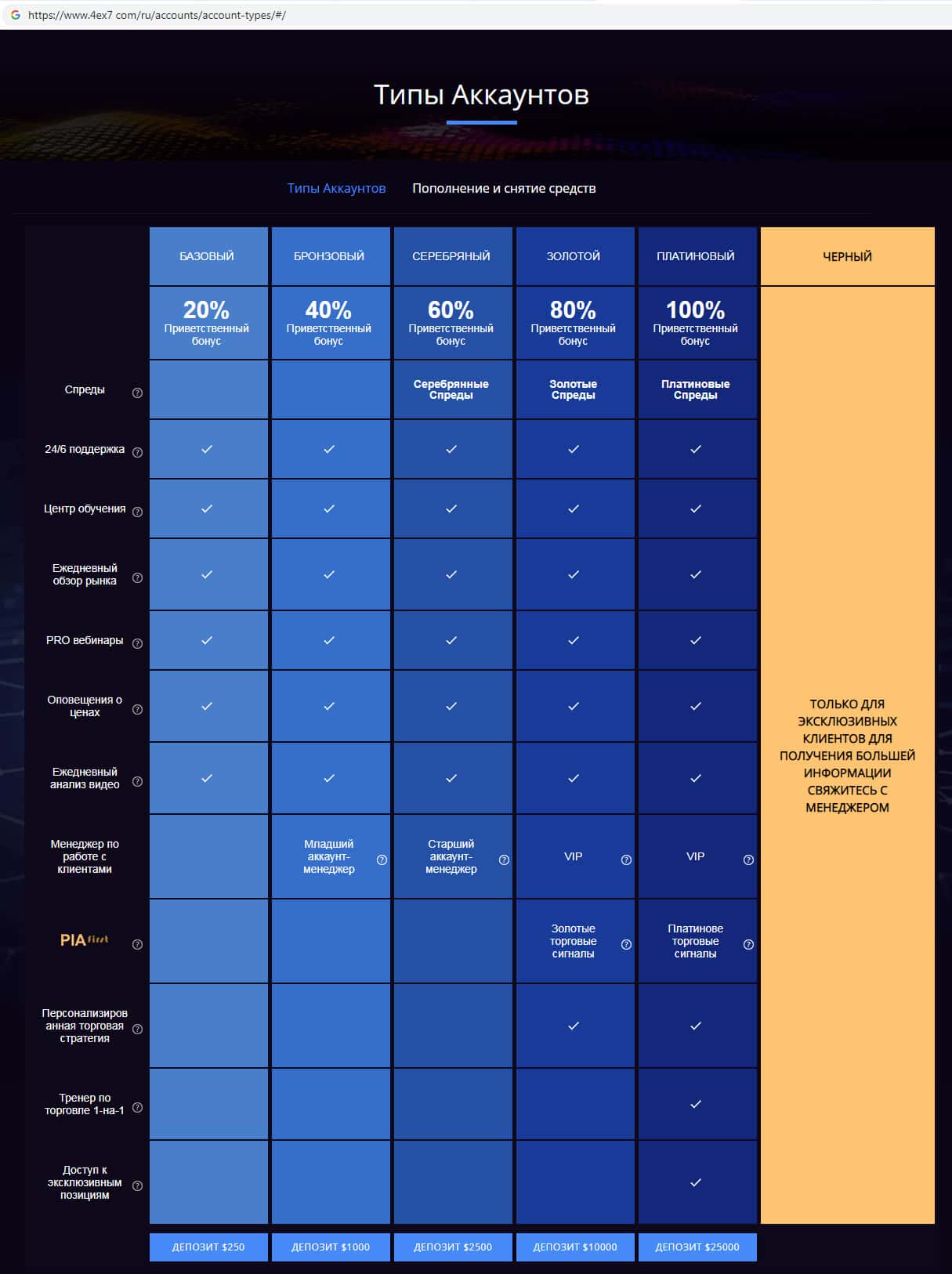 - Типы торговых аккаунтов представленных на сайте скам-брокера 4ИИкс7
