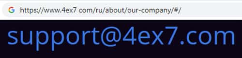 Жульническая организация 4EX7, о местонахождении главного офиса которой ничего не известно, на своем официальном сайте указала номер контактного телефона своей организации, а так же указывает адрес электронной почты своей конторы, который указан ниже:
