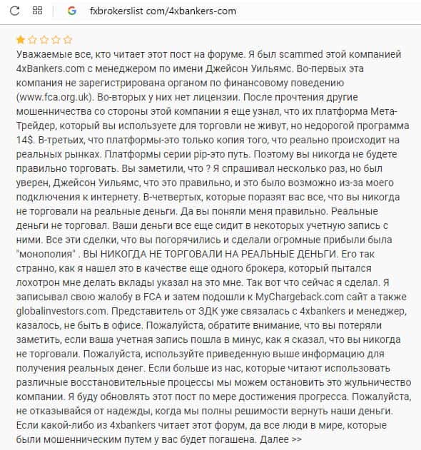 - Остатки информации о соскамившемся шулерском форекс брокере 4х Банкерс