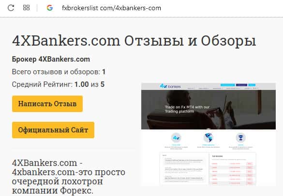 Остатки информации о соскамившемся шулерском форекс брокере 4х Банкерс