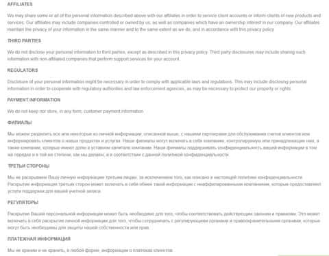 Аферисты конторы 4х ИнКом в своем документе о Политике Конфиденциальности, описали вроде бы понятные вещи, но в конце они начинают указывать один момент, при котором они таки могут вскрыть какую-либо информацию о своих клиентах, если вдруг им будет угрожать какая-либо ответственность перед законом.