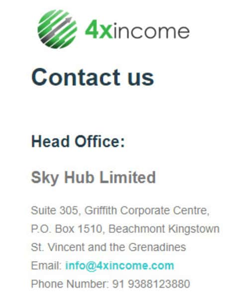 О руководителях и основателях конторы 4xIncome неизвестно ровно ничего, как и о ее лицензии, если она конечно есть. Единственное что можно учесть так это компания-владелец кухни Sky Hub Limited, которая является как владельцем, так и отвечающая за операционную деятельность конторы 4х ИнКом.