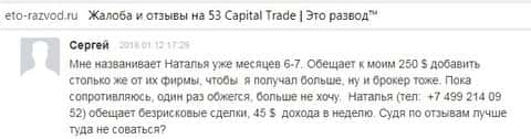 - Мошенники 53 Capital Trade кинули клиента как минимум на 1000$