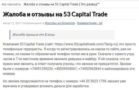 - Жертвы мошеннической конторы 53 Capital Trade пишут свои истории на сайте eto-razvod ru