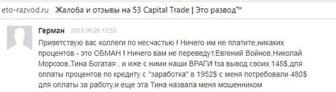 Огромное количество реальных отзывов о мошенниках 53 Капитал Трейд