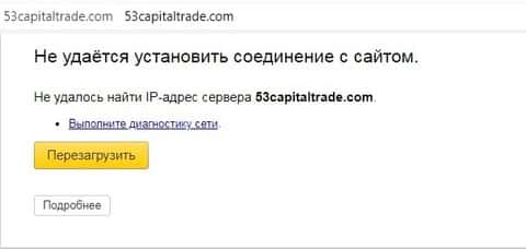 - Дальнейшая судьба сайта мошеннической конторы 53 Capital Trade