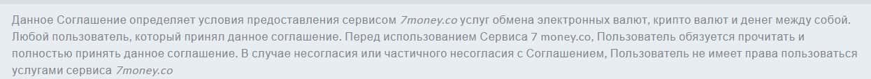 Далее представлена полная версия условий использования обменного лохотрона 7 Мани, где можно самому удостовериться в количестве подводных камней, которые ждут клиента.