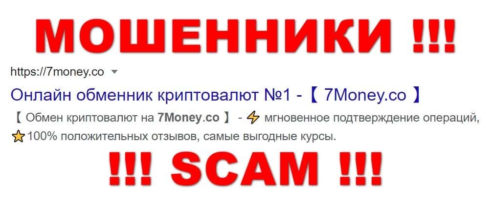 7 Мани - мошенническая псевдо-обменка, которая своей деятельностью обворовывают наивную клиентуру. Информации в интернете о ней по минимуму, потому что становится понятно, что они работают в черную. Также есть некоторые доказательства, что шарага работает в связке с другими конторами, помогая им кидать лохов и за это получать определенную плату. Поэтому ни при каких обстоятельствах не связывайтесь с нелицензированным обменным пунктом 7Money Co.