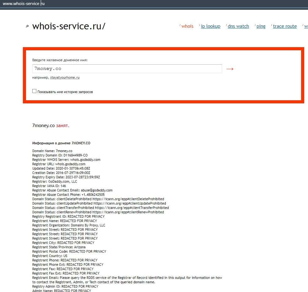 Исходя из данных ресурса whoise-service ru, интернет-сайт конторы 7Money Co принадлежит некоему ООО, которое зарегистрировано в Соединенных Штатах Америке, штат Аризона.