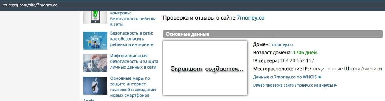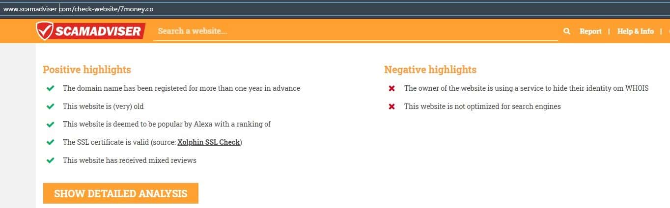 По поводу сайта конторы 7 Мани из сервиса scamadviser com также нечего сказать хорошего так как он имеет множество недоработок и ошибок, которые могут навредить вашему ПК.