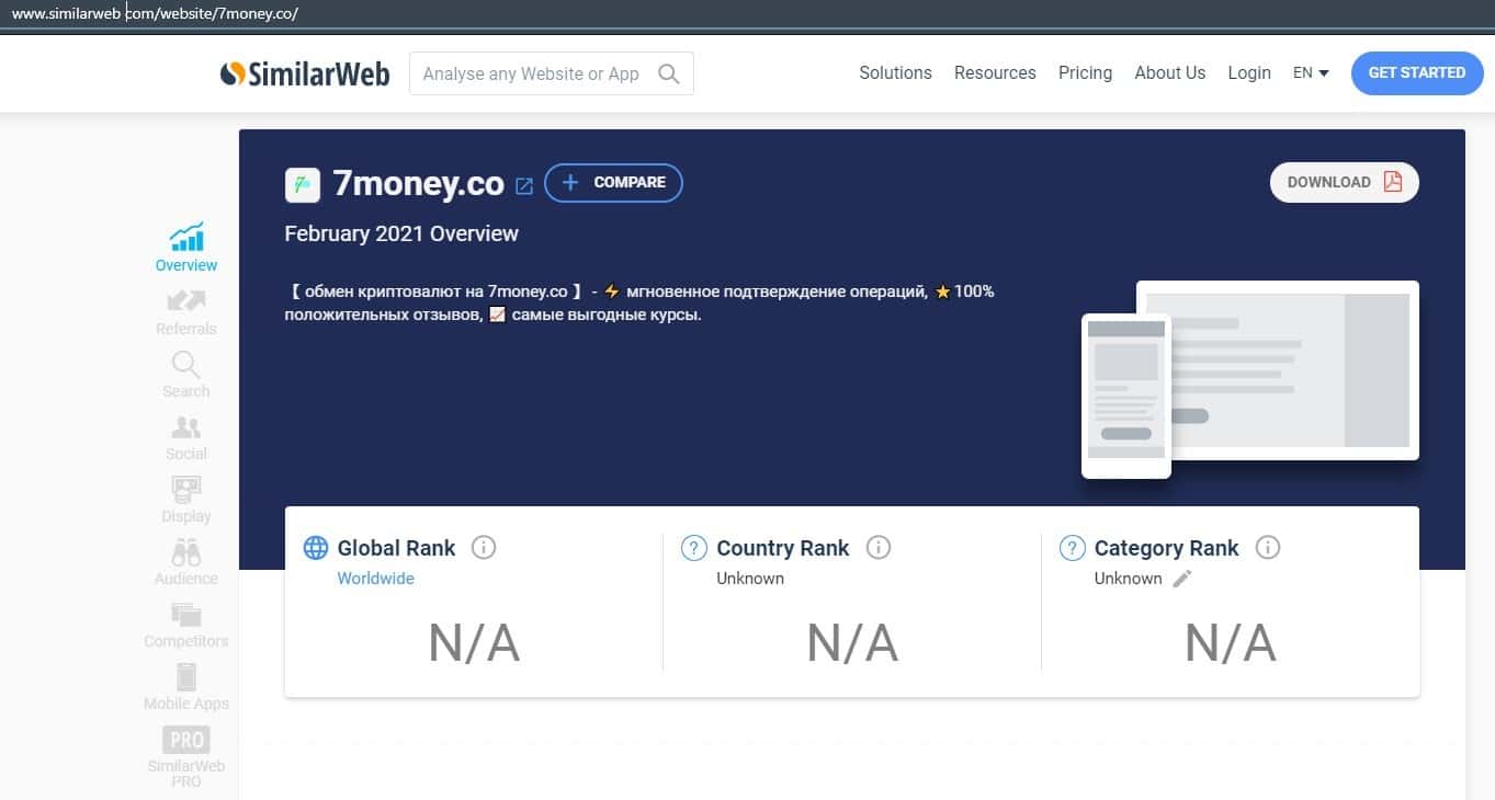 Из специализированных ресурсов мы можем отметить, что сайт конторы 7 Мани посещается с различных стран, но он настолько не популярен, что невозможно определить с каких.