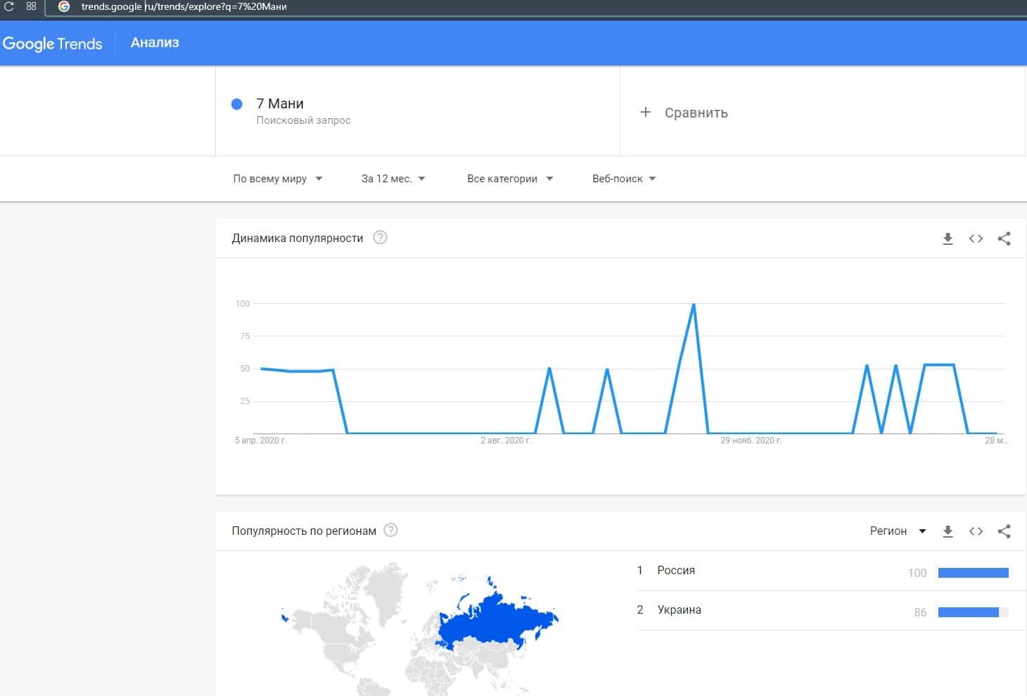 - Статистика запросов по брендам конторы 7 Мани в Гугл