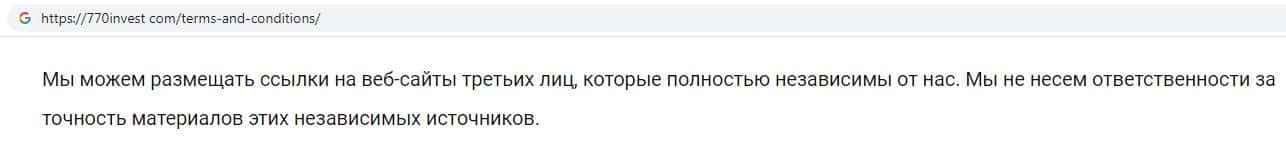Скам-организация 770 Инвест на своем официальном сайте ссылки, за содержание которых скам-организация ответственности не несет.