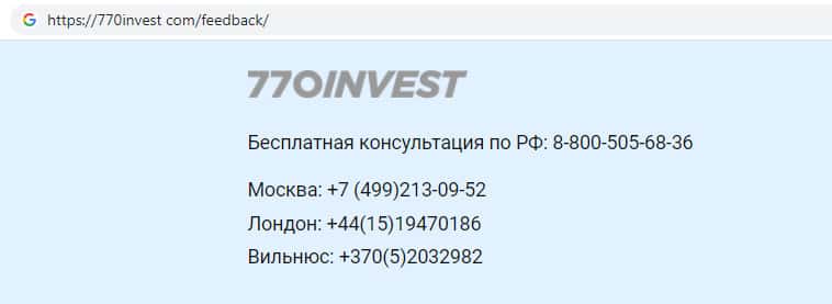 Так же аферисты 770Invest указали еще 4 номера телефона, предлагая якобы бесплатную консультацию. Данное предложение является разводом и не более того.