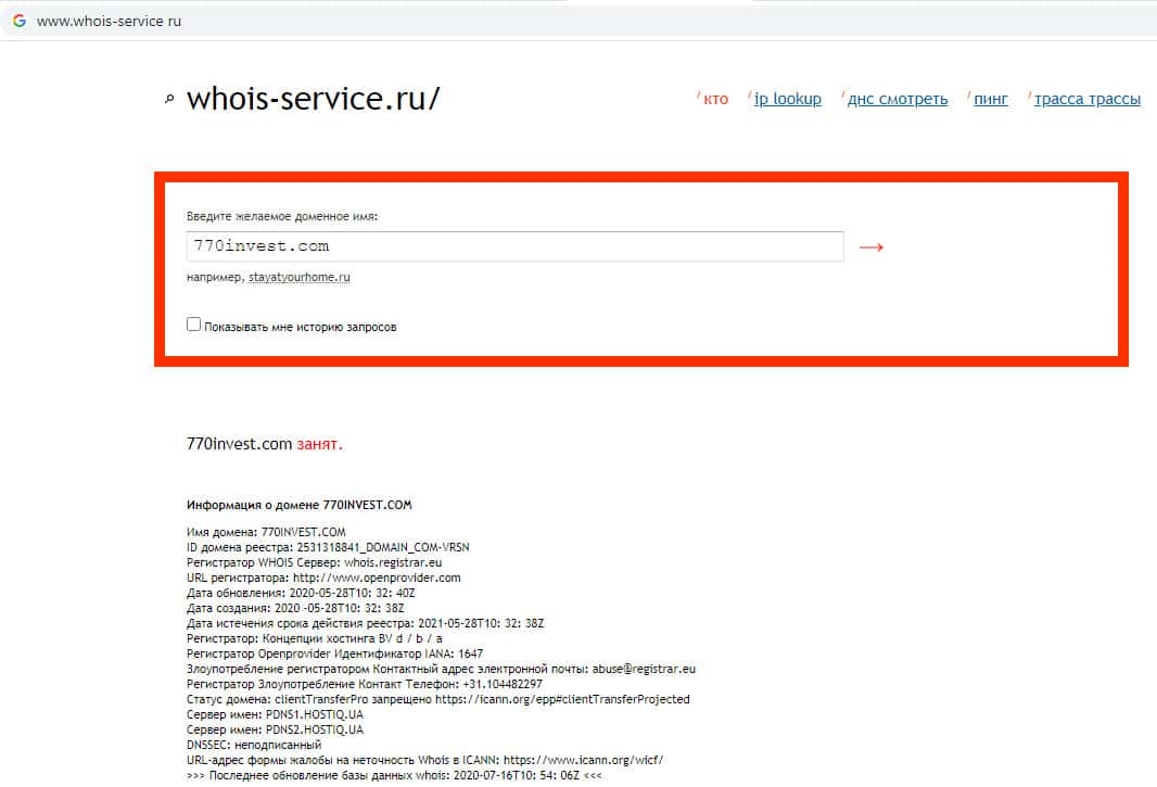 - Проверка домена конторы 770 Инвест на Трусторг Ком