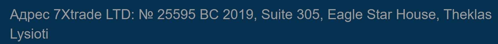 Исходя из официальных данных шулерская контора 7ХТрейд принадлежит некой компании под названием 7Xtrade LTD, которая зарегистрирована на оффшорном острове Кипр.