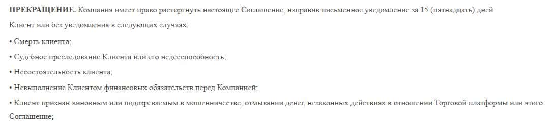 Мошенническая организация 7XTrade в любой момент может прекратить и расторгнуть данное соглашение с уведомлением клиента, так и без уведомление на свое усмотрение.