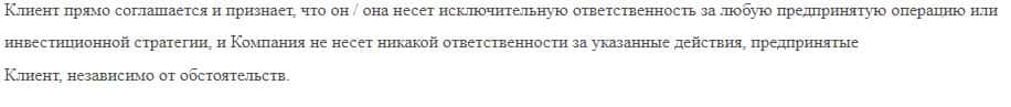 Лохотронская организация 7XTrade вымогает согласиться каждому клиенту с тем, что она не несет ответственности за свои действия, особенно если это приведет клиентов к убыткам.