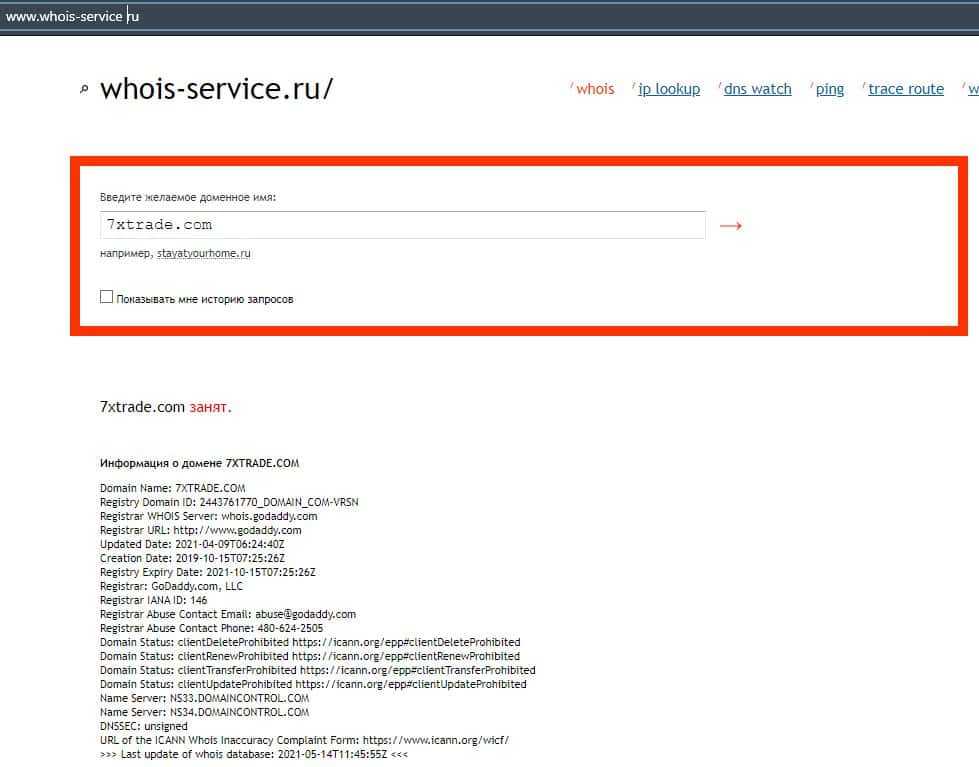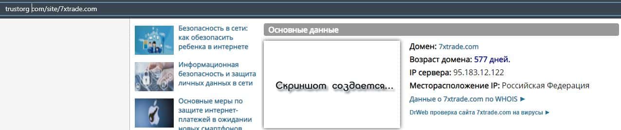 О возрасте домена портала 7xtrade com