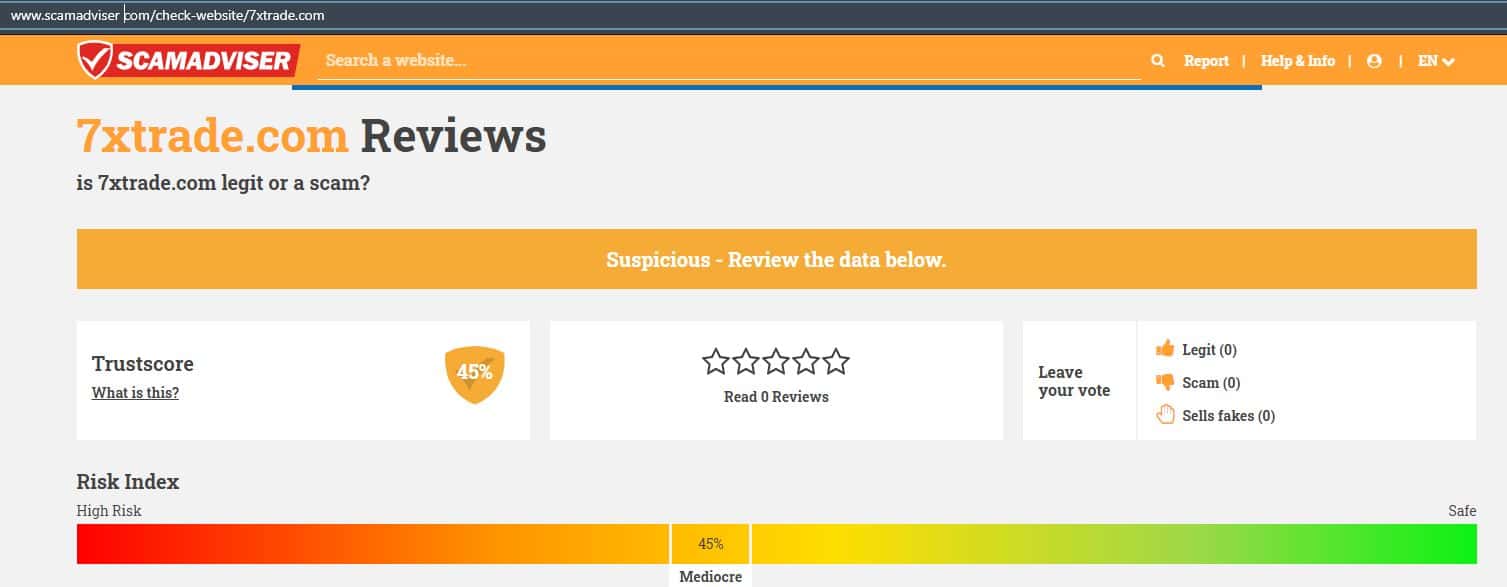 По поводу сервиса scamadviser com, мошенническая организация 7ХТрейд вместе с ее интернет-сайтом не была одобрена, поэтому и саму контору поставили под сомнение.