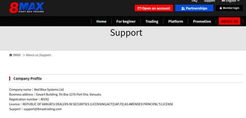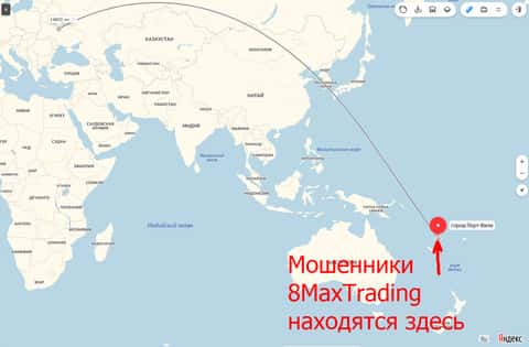 Дополнительным преимуществом для жуликов 8 Макст Трейдинг является факт их оффшорной регистрации, а именно: Govart Building. Po Box 1276 Port Vila. Vanuatu, что дает шулерам 8MaxTrading анонимность счетов и владельцев, к тому же все суды и разбирательства с мошенниками 8 Макс Трейдинг будут происходить непосредственно на территории офшора.