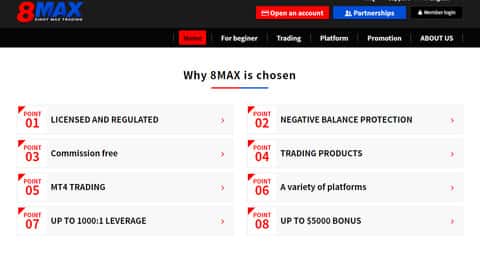 Далее на сайте шулеров 8MaxTrading следует довольно ожидаемый раздел с так званными преимуществами данного лохотрона, именно под предлогом которых аферисты 8 Макс Трейдинг будут пытаться развести наивного клиента на ввод средств в свою помойку. На изображении, расположенном ниже, вы можете увидеть очередной раздел сайта лохотрона 8MaxTrading.
