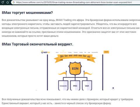 Негативная статья о мошенниках 8 Макс Трейдинг с портала valforex com