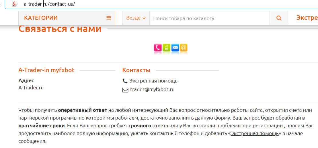 Контактные данные псевдоброкера А трейдер