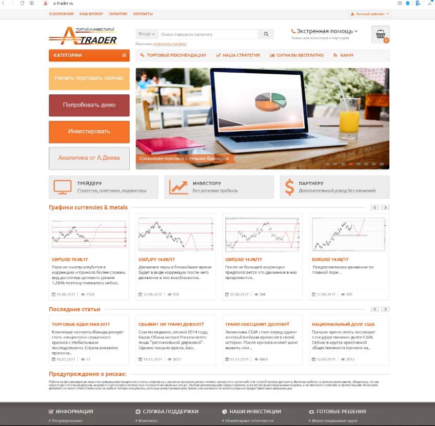 Как выглядит главная страница сайта дилингового центра А Трейдер?
