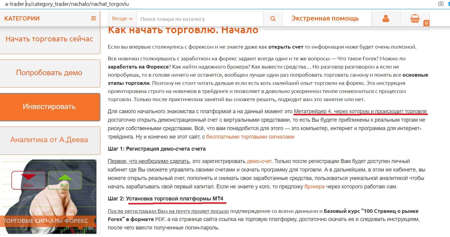 - Как выглядит главная страница сайта дилингового центра А Трейдер?