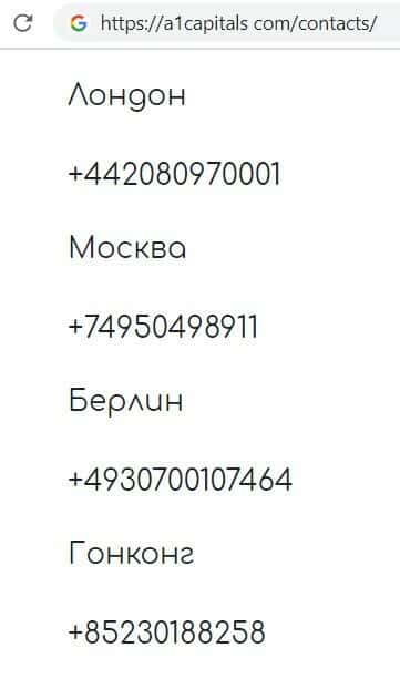 Фирма разводил А1 Капиталс указала на своём сайте номера телефонов, с которых администрация проекта звонит пользователям и разводит их на деньги. Номера: