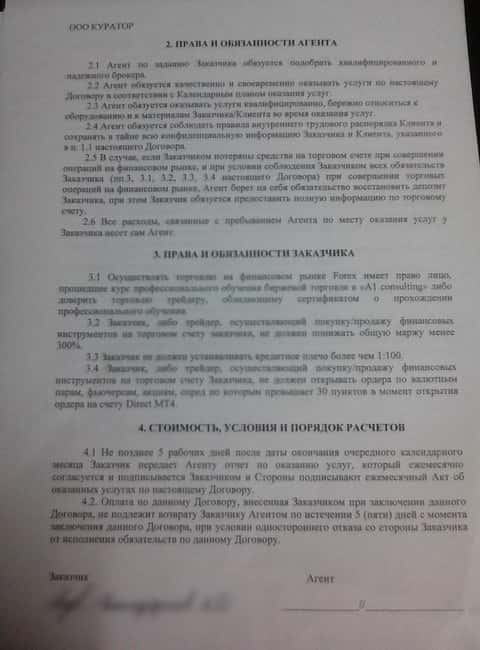 Еще несколько разделов договора между клиентом и мошеннической организацией A1-Trust.