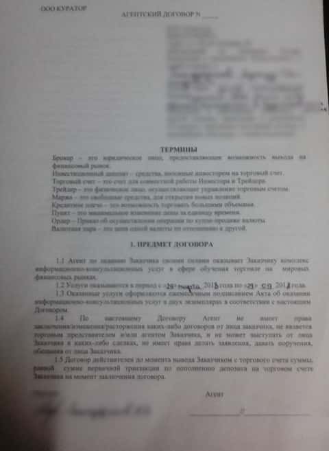 Ниже представлена копия договора, которую предоставила контора А1 Траст на подпись своему клиенту.