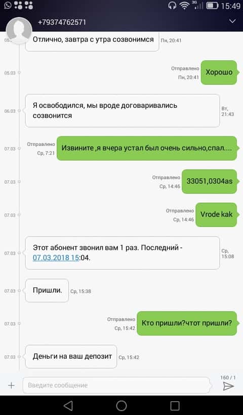 Еще одна переписка с аферистом А1 Траст через номер телефона +79374762571.