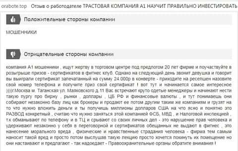 Максимально полный отзыв о жуликах A1-Trust на сайте orabote top