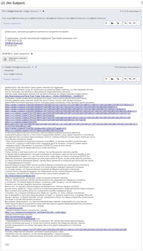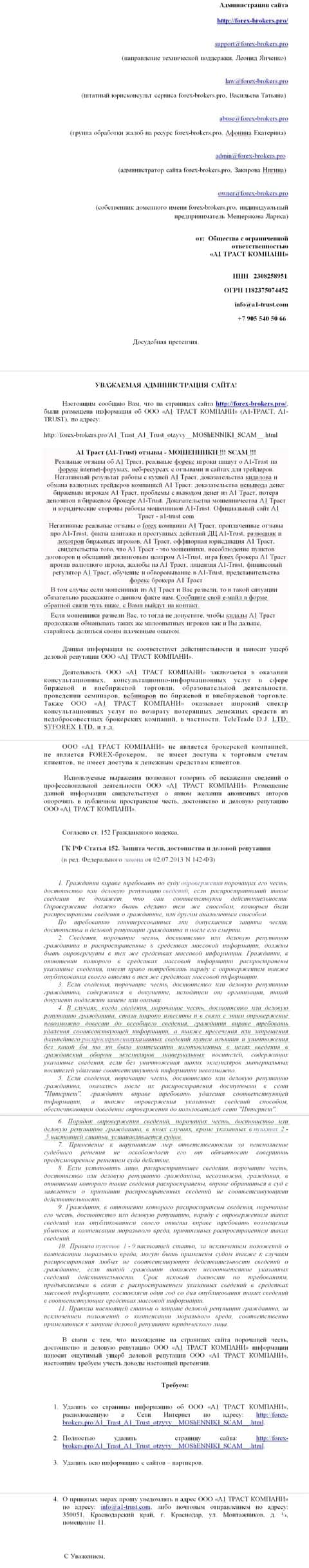Письмо от мошенников А1 Траст Компани и ответ на их претензию публикуем ниже, чтобы все процессы были максимально публичными и открытыми.
