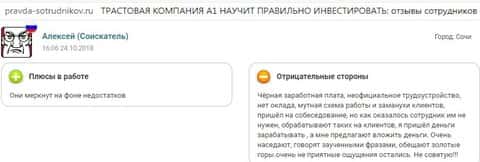 - Отзыв на сайте pravda-sotrudnikov ru о действиях мошенников А1 Траст