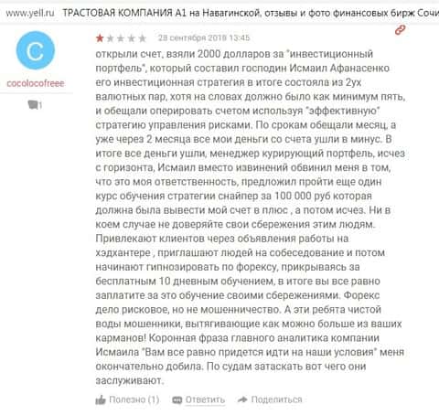 Отзыв на сайте pravda-sotrudnikov ru о действиях мошенников А1 Траст
