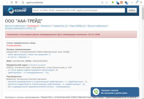 - Офис АААТрейд был ликвидирован в городе Барнаул