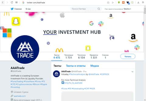 - Довольно высокая активность АААТрейд в сети Твиттер