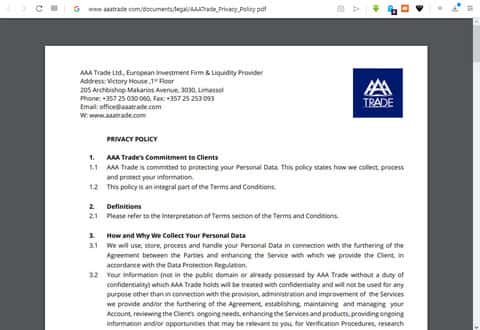 Данный сервис ещё имеет политику конфиденциальности. С самых первых строк нас уверяют в честности и благородии их, но прочитав политику, такое мнение, если было, сразу рассеивается. Компания утверждает, что будет использовать ваши данные, но не ставит себе рамки их использования, то есть не несёт ответственности за слив клиентских данных, которые ввели наивные клиенты.Директора-невидимки AAATrade играют в прятки