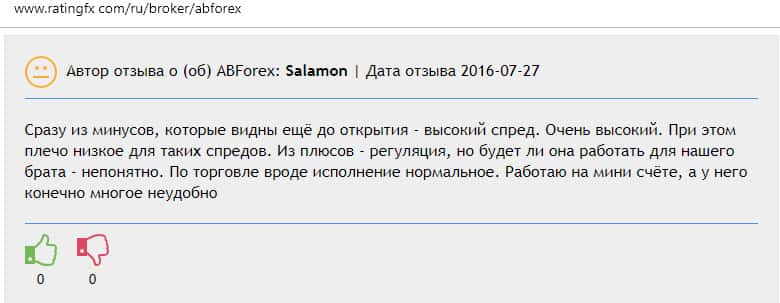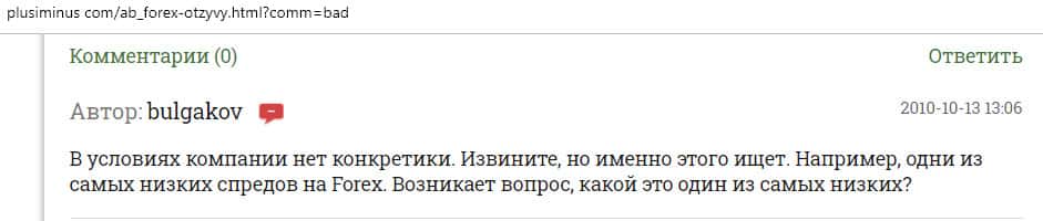 Пользователь сети против сотрудничества с кухней АБ Форекс