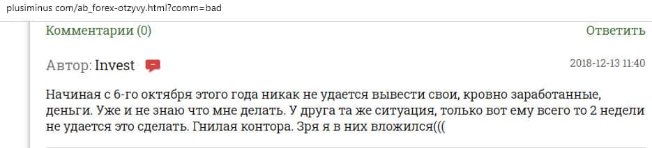 - И снова лохотрон АБ Форекс не отдает вложения