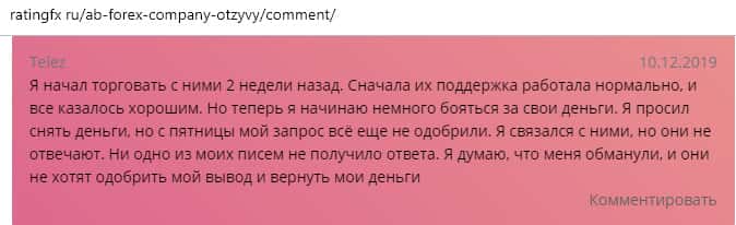 - Контора AB Forex продолжает не выводить деньги клиентам