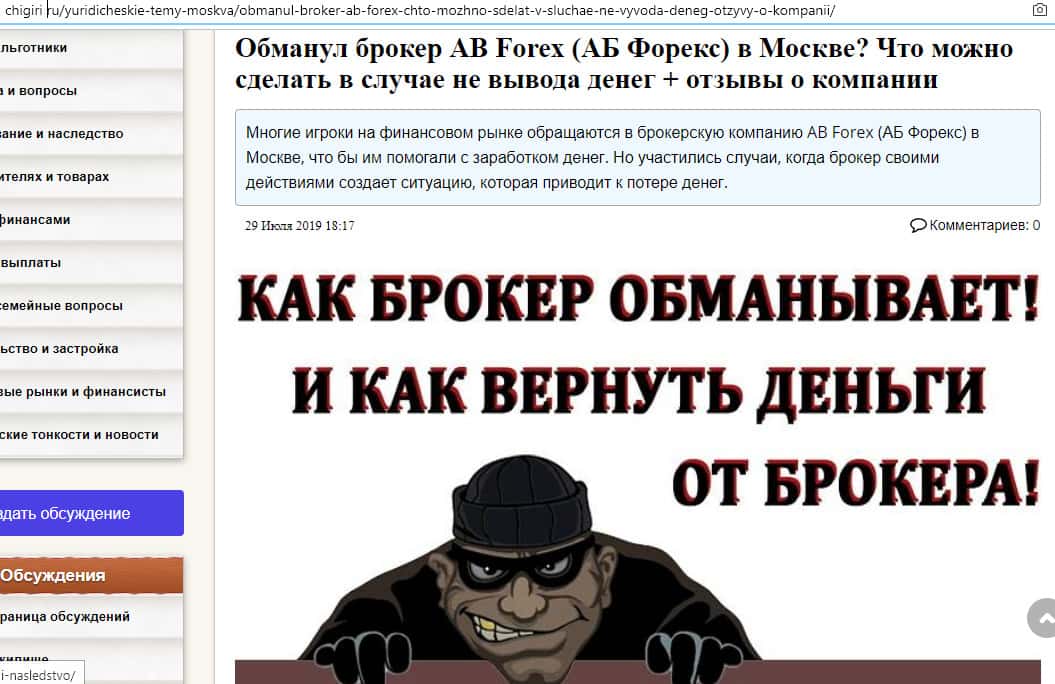 - Лохотрон AB Forex орудует в Москве