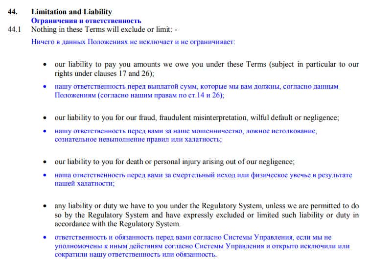 Интересный момент по поводу той ответственности, которую каждая контора пытается снять с себя любыми путями. Жулики конторы AB Forex позаботились о том, чтобы не компенсировать убытки, которые она может принести клиенту по собственной вине. И в тоже время на клиента такое ограничение не применяется.