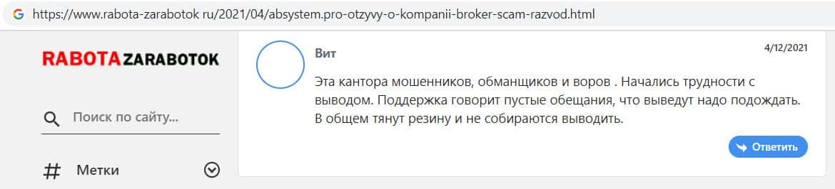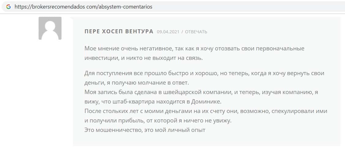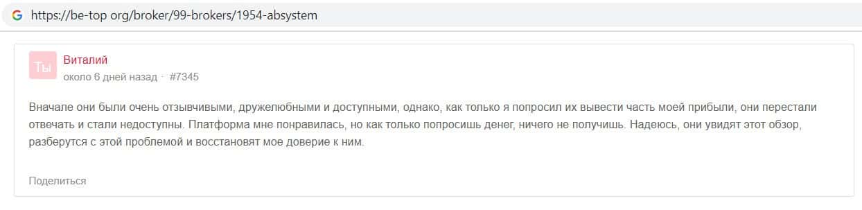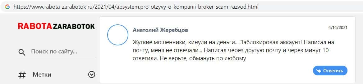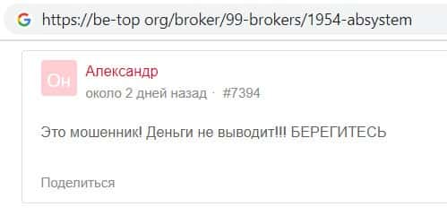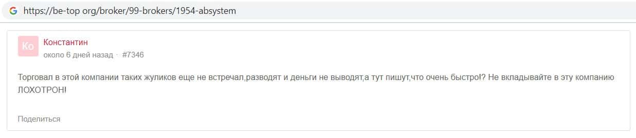 Отзывы интернет-пользователей о компании разводил ABSystem Pro