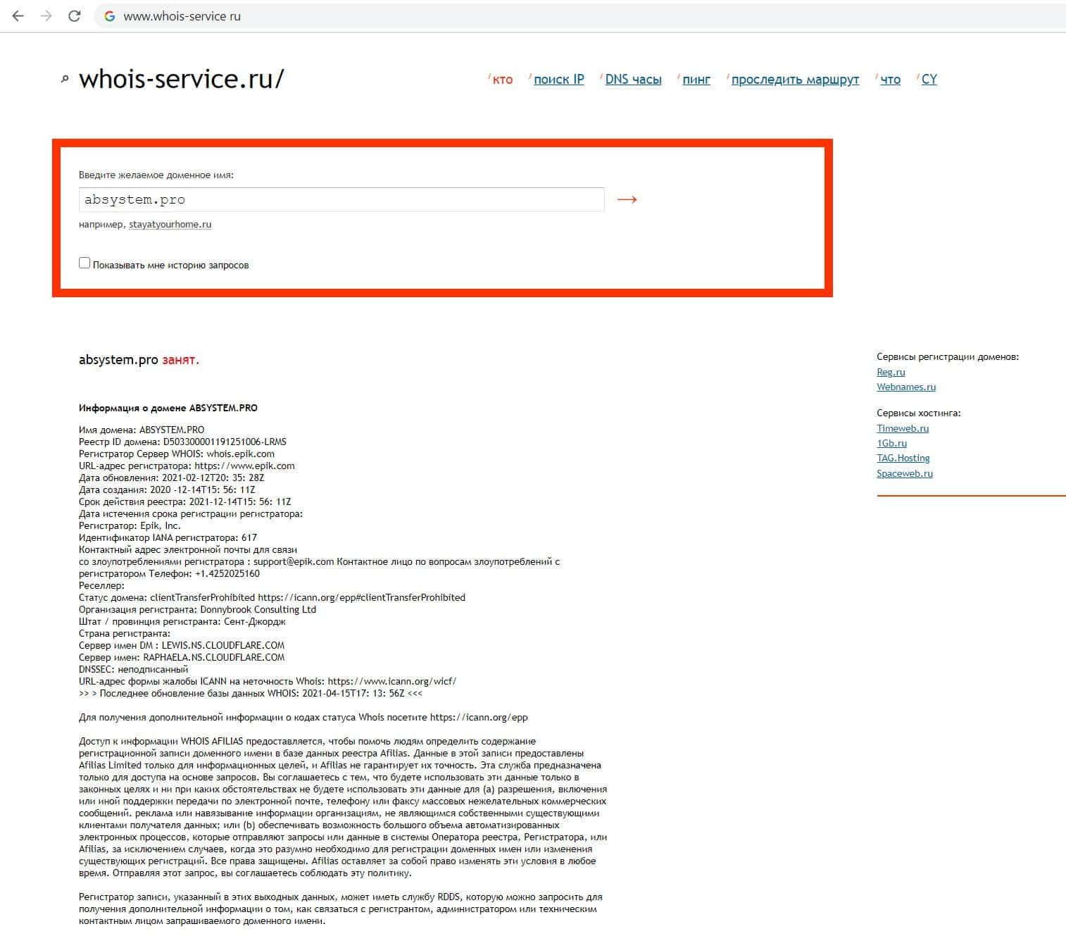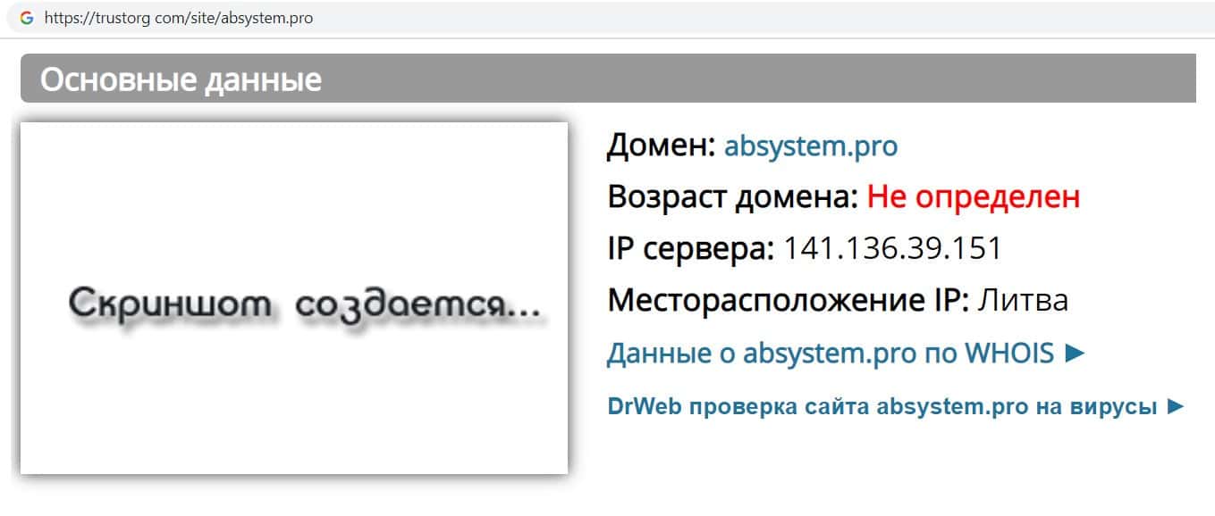 Кому принадлежит доменный адрес махинаторов ABSystem Pro?