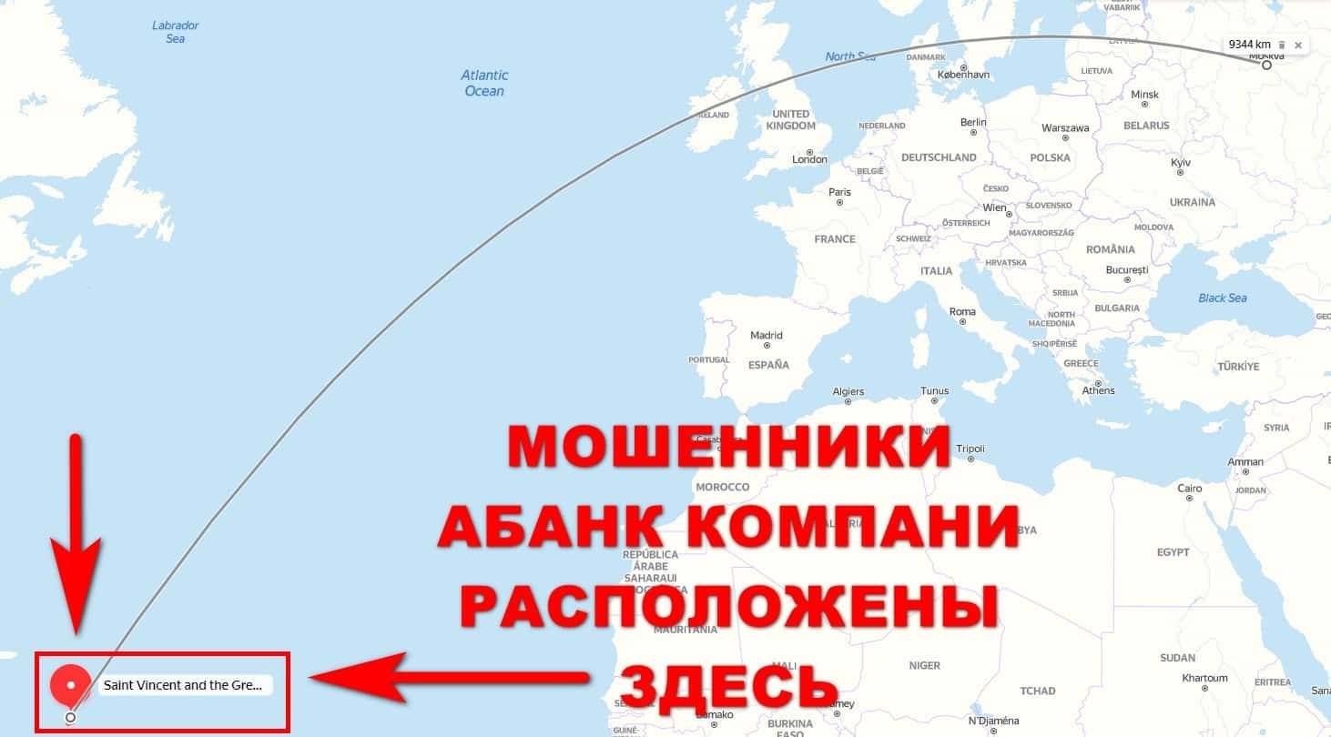 Далее представлена информация о том, где на самом деле была расположена форекс-контора АБанк Компани. Как оказалось это оффшорные острова Сент Винсент и Гренадины.