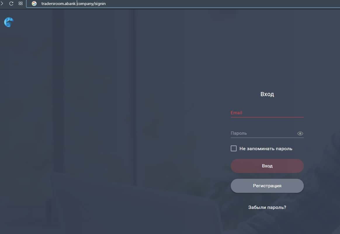 Ниже вы можете ознакомиться с одним из разделов сайта форекс-конторы АБанк Компани, где еще просто остались форма для входа и регистрации в их мошеннической организации.